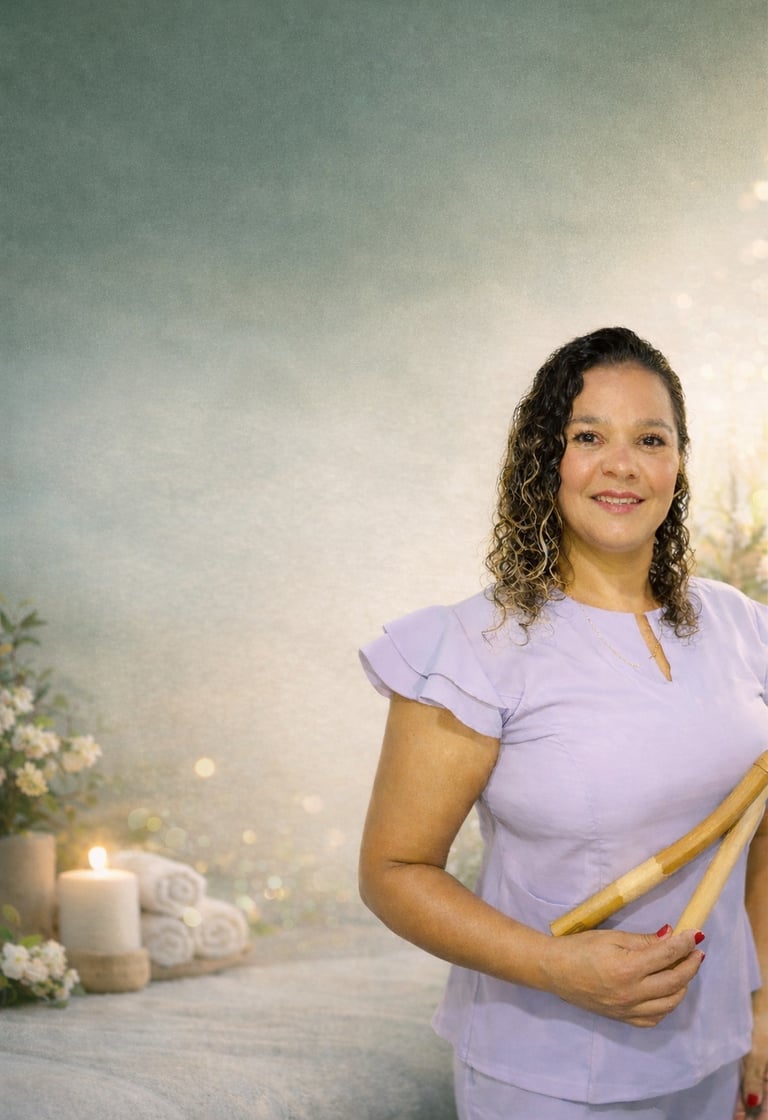 Técnica terapêutica que utiliza hastes de bambu para aliviar tensões musculares, estimular a circulação e promover relaxamento profundo, proporcionando sensação de leveza e bem-estar.